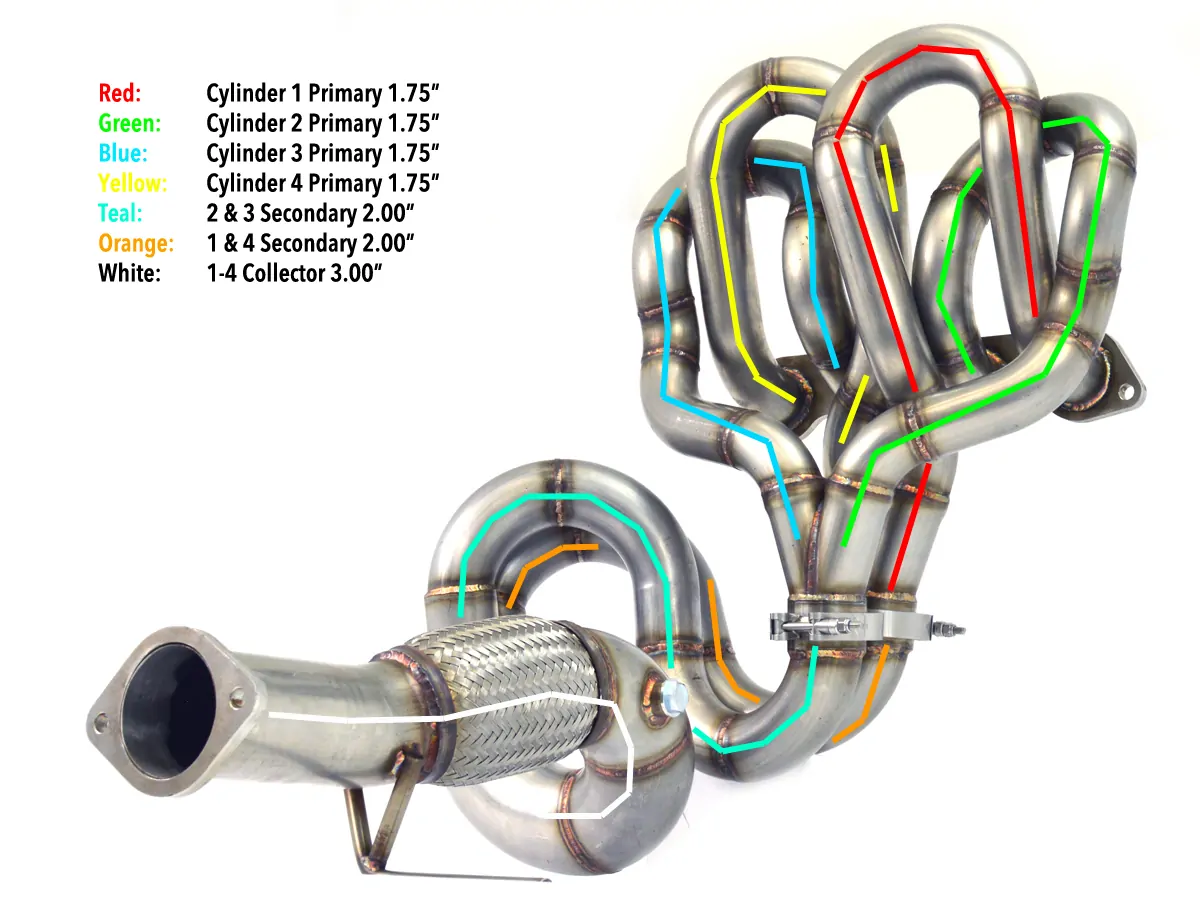 When the cylinders are shut off only two of the four primary exhaust pipes (#1 through 4 in the CS diagram) are used because there is no ignition in those cylinders. (cylinder 1 and cylinder 4 get shut off)